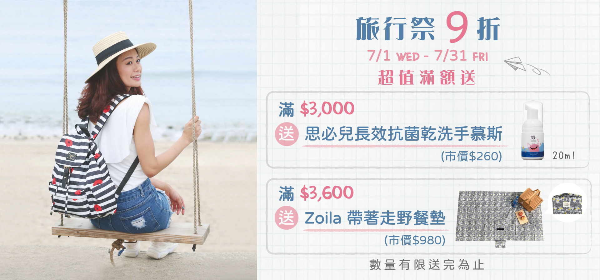 單筆結帳金額滿$3600,送Zoila帶著走野餐墊(定價$980)