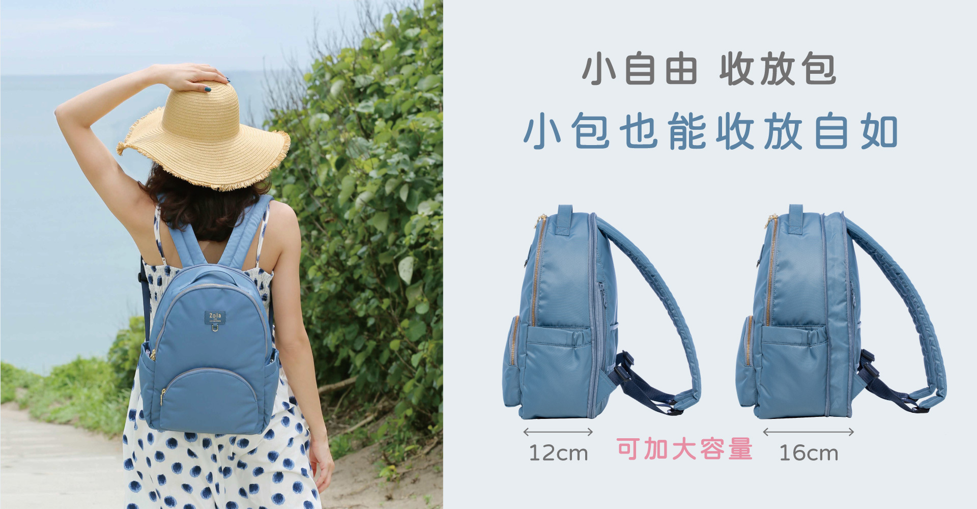 尺寸適中,適合嬌小個子的後背包。多了以備不時之需的加大功能,讓小包也能變身大容量