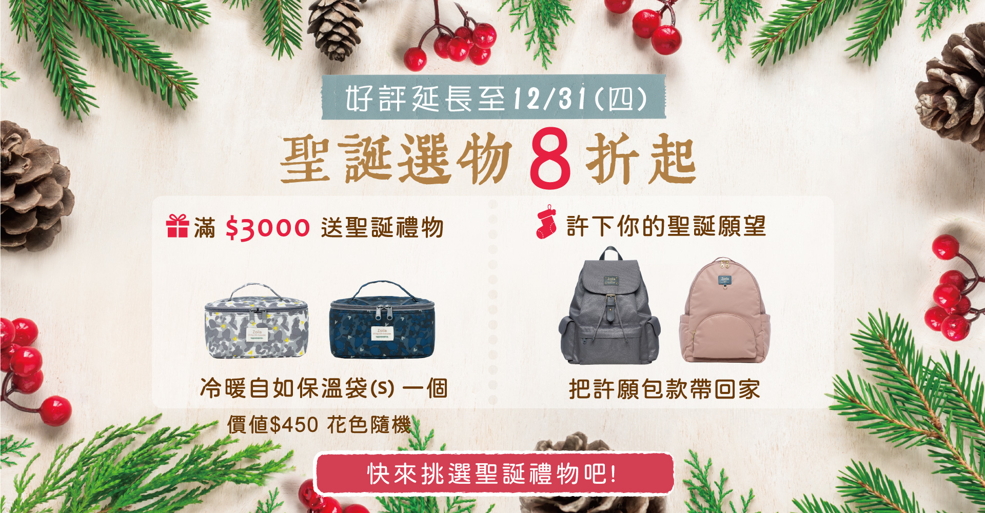 2.購買任一包款還可參加聖誕許願活動,就有機會得到你許願的Zoila包款喔!(以現貨為主,若得獎人許願的包款缺貨將另行通知重新選擇)
