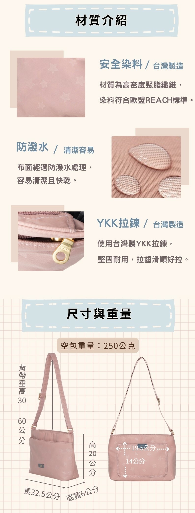 5. 裡外布使用防潑水材質,容易清潔。