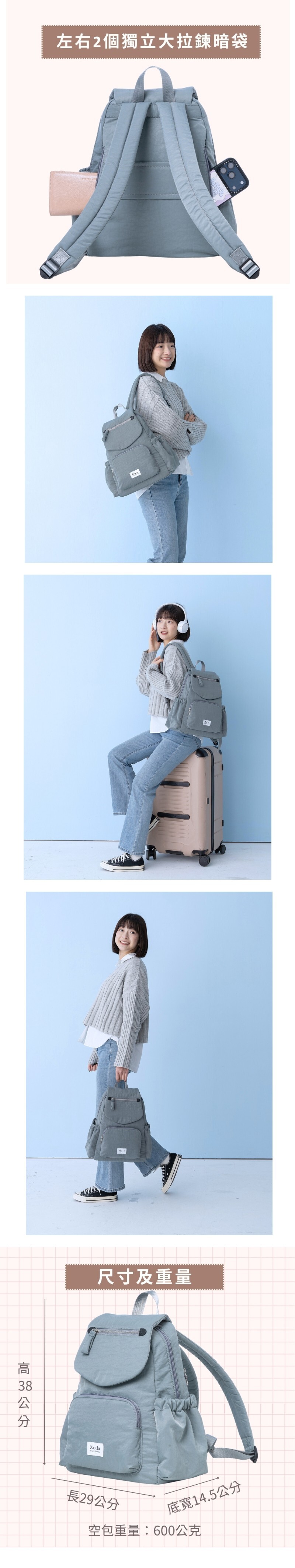 4.背後有插袋可放置於行李箱上
